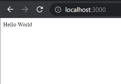 Our express server is listening at port 3000 . So if we go to the localhost:3000 we can see the Hello World there like this: